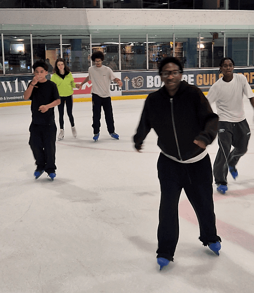 One of the standout moments came courtesy of Sudhanssu, who brought plenty of smiles as he posed and skated around with the safety snowman. DD also turned heads with an eye-catching outfit for the day, and Joshua and Ryan showed that basketball isn’t the only activity they’re good at. JJ and Joyal impressed everyone with the natural ability to skate, even though this was their first time on the ice and the rink was also graced with some real talent, Eliza teamed up with Diana and showed impressive skill and guidance, with both gliding effortlessly past the others.